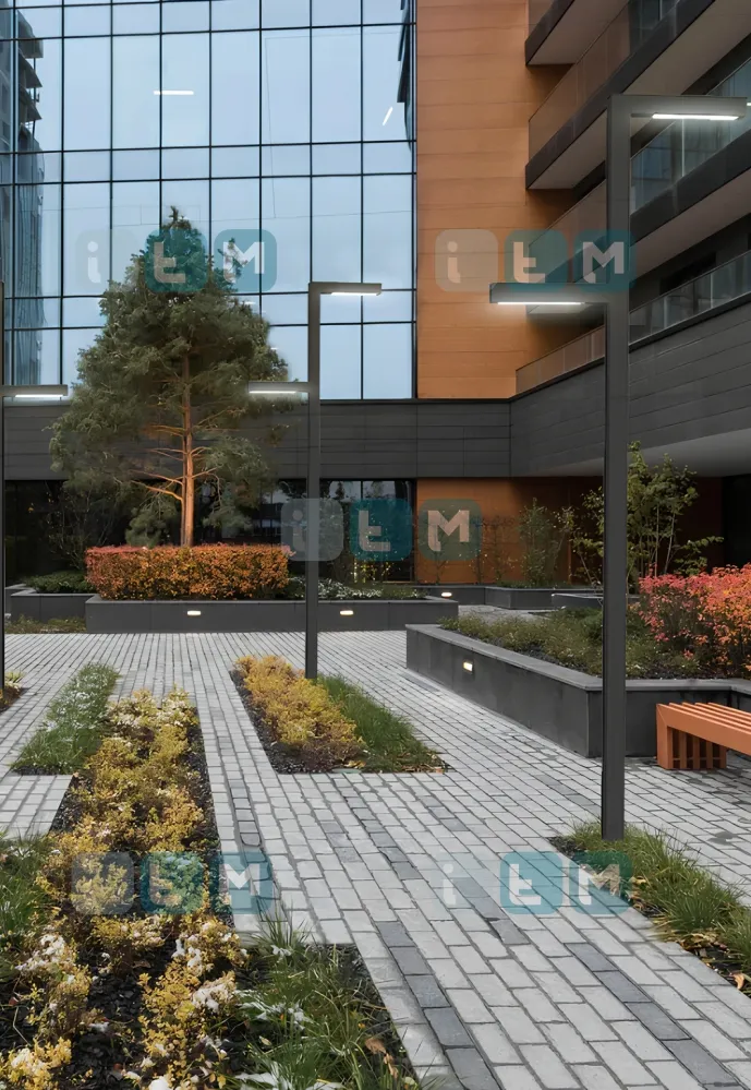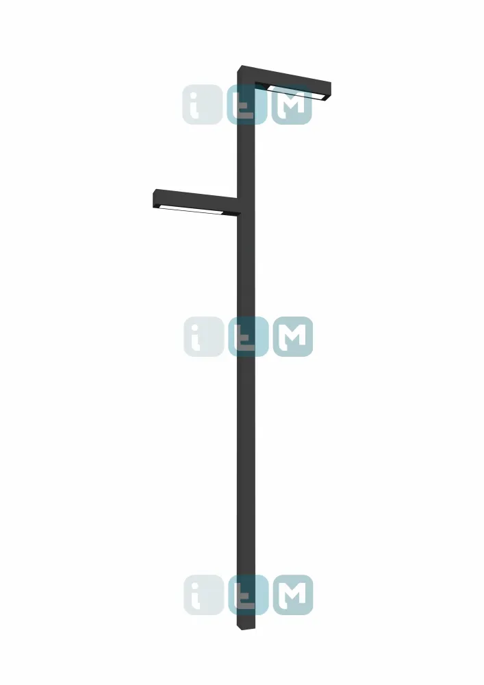 Г-образная парковая опора ТВЕРЬ отличается удлиненной верхней частью, в которой расположены светильники.